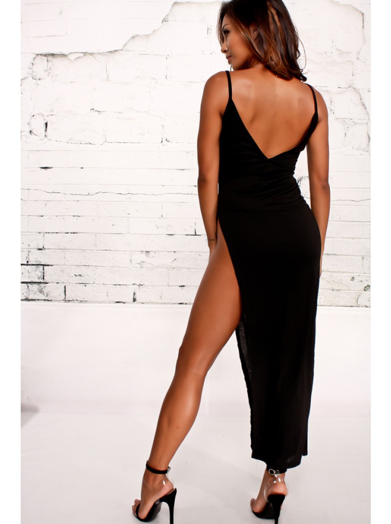 This party club dress features thin shoulder straps,deep v neckline, scoop back, cut out side. Length measures about 52 inches. Other accessories not included. -35% polyester -65% cotton Material Feeling: - Softness: Medium - Stretchy: Medium - See Through: Yes, thin material